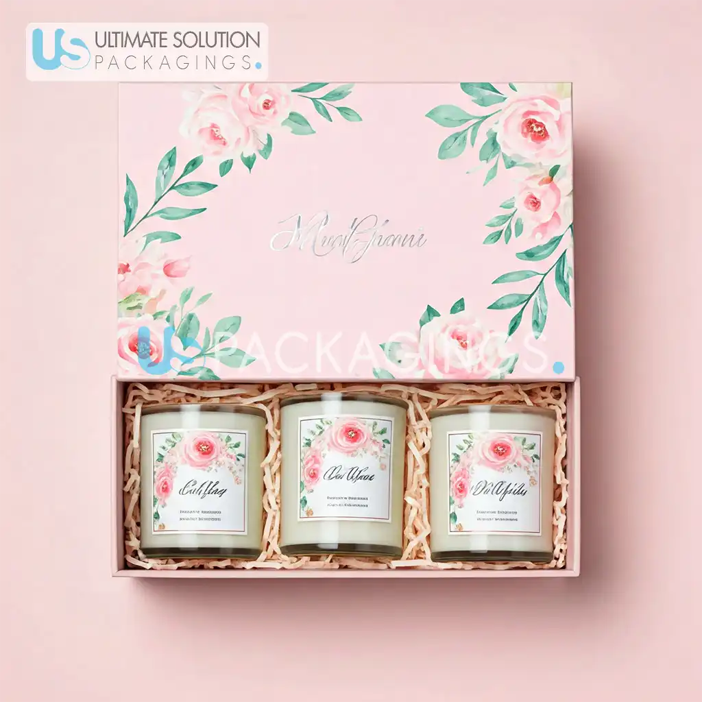 Find the best candle gift boxes at US Packagings. We offer custom designs and stylish packing. Choose from premium options or affordable wholesale deals. The proper candle gift case makes every present special. We are here with an appropriate candle present box set, protective gift boxes for candles, or elegant candle gift packaging if you want. We created our package to protect your goods, like candle mailer box and remember them.